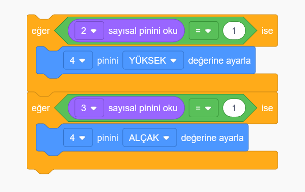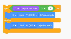 Butonlar 0 ve 1 olmak üzere iki değer alırlar. 1 değerini basılınca 0 değerini normal pozisyonunda alırlar. Programımız bu duruma göre şekillenmiştir.