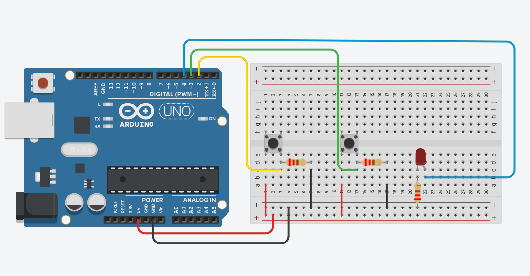 2 Buton 1 Led Uygulaması için malzemeler;