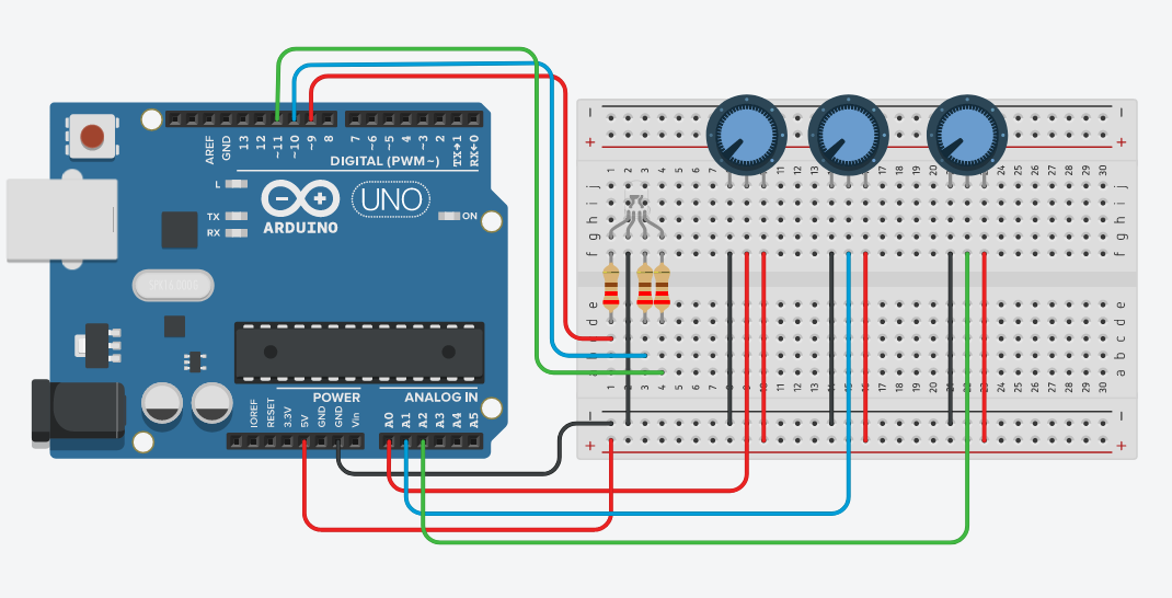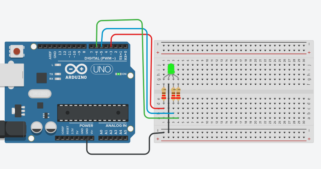 Bu 3 rengi kontrol etmek için 3 adet direnç ile birlikte kablo bağlantısı yapılır.