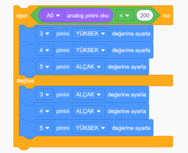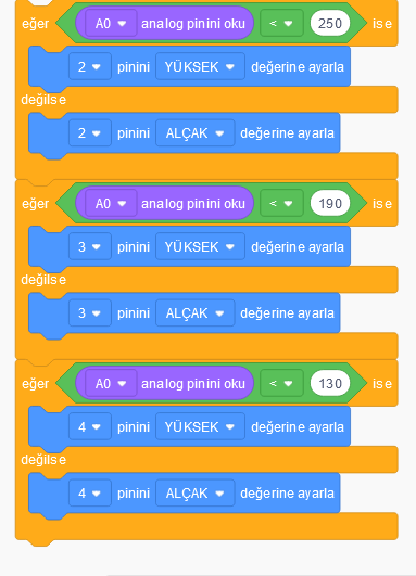 Bağlantıları sırayla soldan sağa doğru,5v,analog pin ve Gnd’dir.